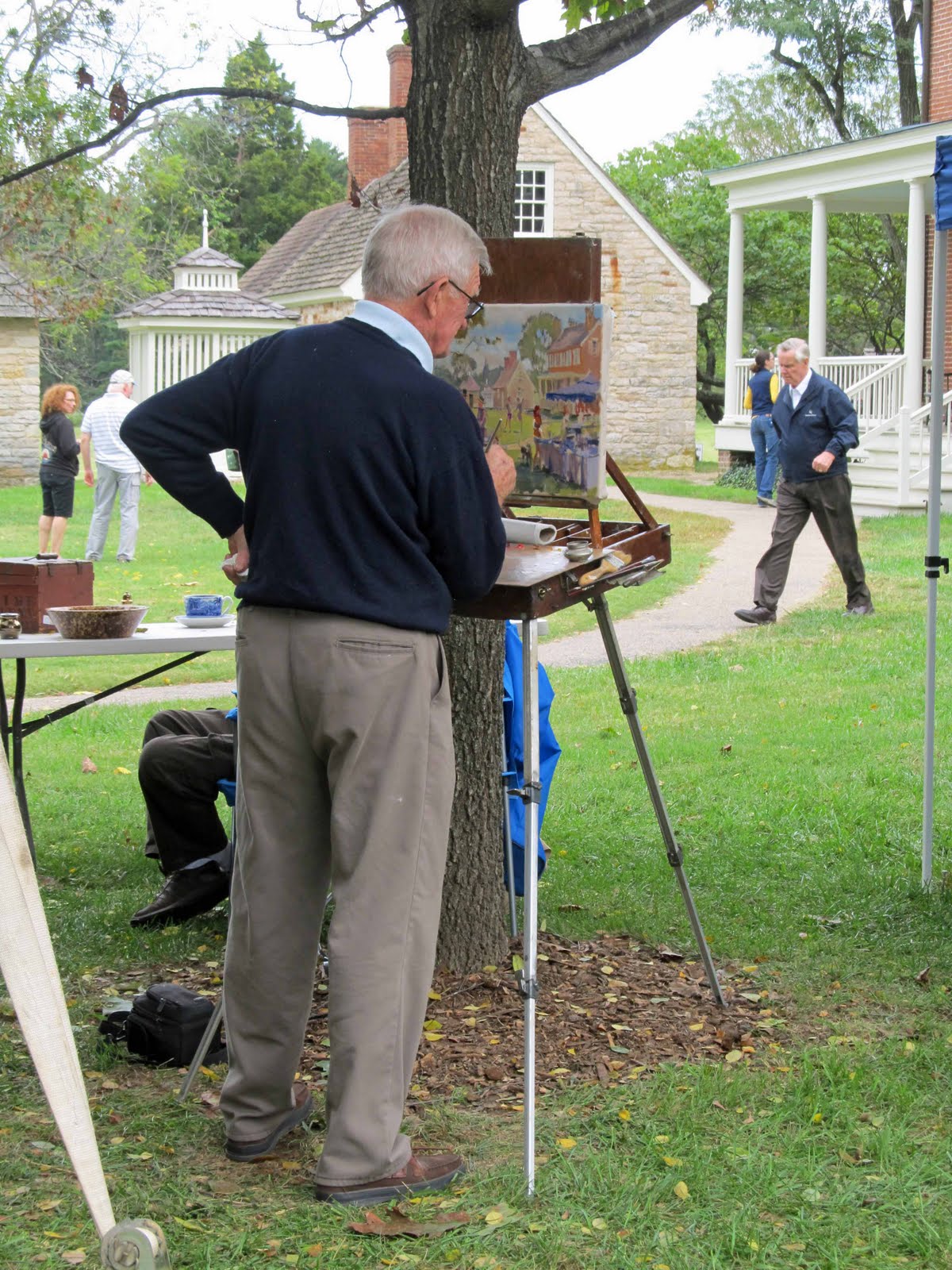 A painter from New Zealand working on a watercolor of Locust Grove. People were fascinated by his work and stopped to watch him and ask questions.